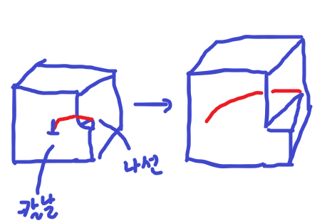 다시 3차원적으로 보면, 위와 같이 슬립이 끝까지 이동한다면 격자가 변하게 될 것입니다.