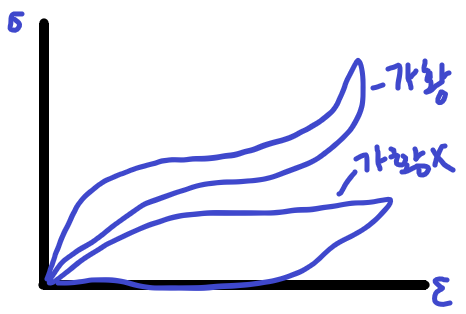 대부분의 변형이 회복되게 됩니다. 이때, 응력-변형률 선도를 보면 변형이 될때와 돌아올때가 변형이 다른 경로를 보이게 됩니다.