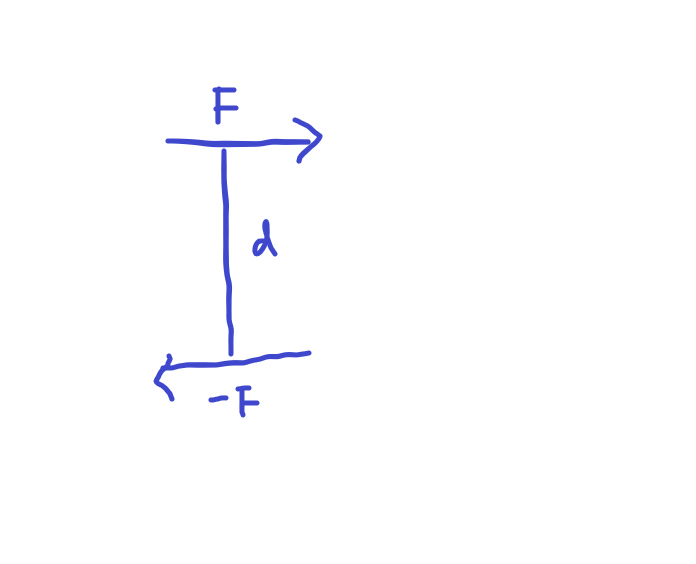 그림과 같이, 수직거리 d만큼 떨어져서 작용하는 크기가 같고 방향이 다른 두힘을 우력이라고 한다.