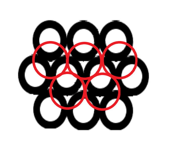 이렇듯, 1층에서의 역삼각형 빈틈에 2층을 쌓는다면, 3층은 다시 1층의 위치에 적층하게 되는 구조이다.