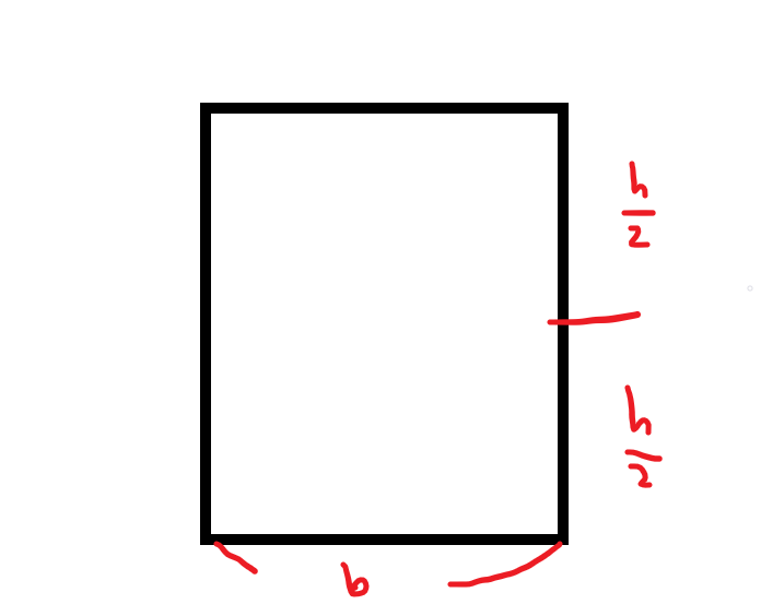 이를 예를들어 높이가 h이고 폭이 b 중립축에서 끝점까지의 거리가 c인 직사각형에 적용하면,