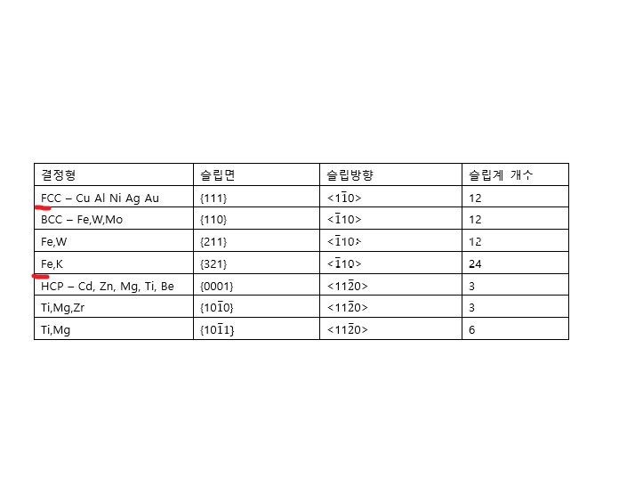 이때 같은 결정형에서 슬립면은 달라도 결정방향은 같게 됩니다.