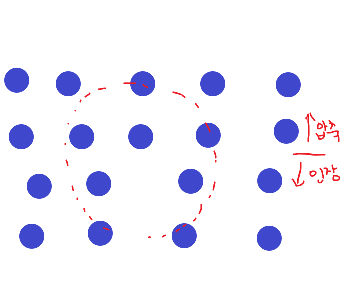 동일한 부호의 슬립면을 갖는 칼날 전위가 서로 만날 경우 압축변형장과 압축변형장이 반발력처럼 작용,